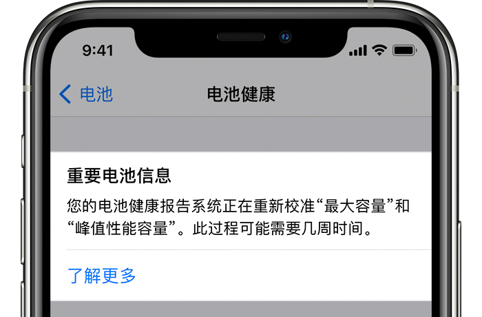 文件显现,电池健康陈述体系或许需求消耗数周时刻才干确认电池最大容量百分比和峰值功能容量。校准过程中电池菜单中会显现一条音讯,解说相关作业,用户在日常运用中不会感知到太多差异。