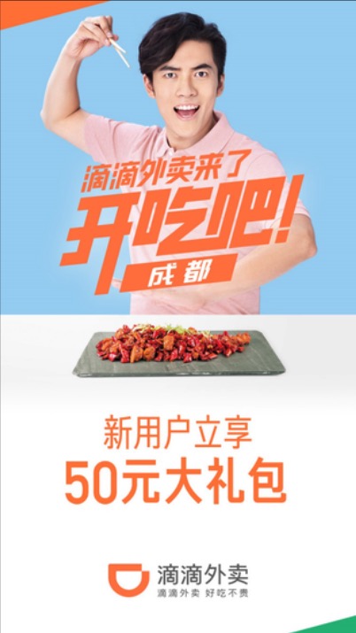 关于成都的用户,滴滴外卖计划为近期一切新注册客户发放 50 元大礼包,该礼包由多张代金券组合而成,此外渠道还将联合全城各大商家展开各种开城优惠活动。